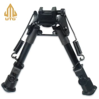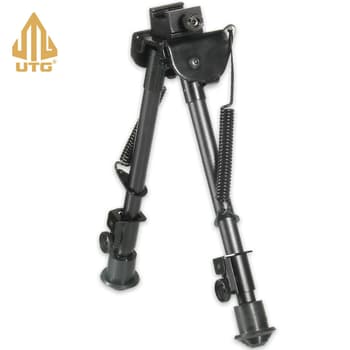 What I like about the UTG Recon 360 TL Bipod is that you get a real custom feel when you use it. The fine-tunable tension adjustment lever applies the amount of tension to the panning function that you want. It allows for 360-degree panning and a 15-degree forward, rearward, left and right tilt. The aircraft grade aluminum bipod also features an adjustable 8” to 12” center height and a low-profile, offset Picatinny mount. The versatile, three-position folding legs have lockable leg extensions, which are outfitted with non-slip, rubberized foot pads.