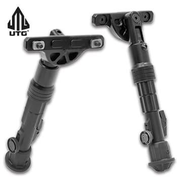 Giving you the versatility to use it on different firearms with varying height clearance and mounting real estate, the UTG Recon Flex M-LOK Bipod makes a great addition to your shooting gear. It directly attaches to the M-LOK handguards at the three and nine o’clock positions, so that it’s quick and easy to mount. All it requires is the length of two M-LOK slots per leg and the center height is adjustable from 8” to 11”. The ergonomic, spring-loaded slide locking ring allows for quick and effortless deployment. The bipod features versatile, bidirectional legs that have five extendable Posi-lock positions and flexible in-between positions, lockable via a thumb wheel. This bipod also has non-slip, rubberized foot pads.