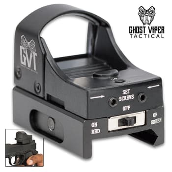 You can count on stellar accuracy in any condition because the Ghost Viper Tactical Combat Reflex Sight is an exceptional multi-purpose optic designed to easily fit on handguns, shotguns and rifles. The lightweight sight has five levels of brightness control with red and green illumination and eight reticle patterns, plus, it’s parallax corrected and features unlimited eye relief. The 33mm lens has an anti-glare reflective coating and gives you one MOA per click, which is approximately one inch at 100 yards. You get full windage and elevation adjustment with the included Allen wrenches. The water-resistant, shockproof sight features a built-in mount for standard Weaver or Picatinny bases and there’s no need to re-zero when remounting the dismounted sight.