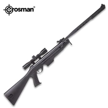 Powered by Nitro Piston technology, the Crosman Benjamin Prowler Air Rifle With Scope will blast .22 caliber pellets up to 950 fps. This technology provides you with a quieter shot, reduced recoil and greater velocity and energy consistency. The break barrel air rifle features an all-weather synthetic stock and a muzzle break for ease in cocking for the next shot. The Benjamin Prowler includes a 4x32mm CenterPoint precision scope.Pros: